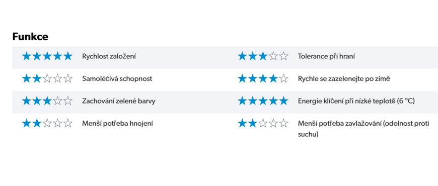 SOS® umožňuje přisévání i při velmi nízkých teplotách, už od 4 °C půdní teploty, kdy běžné travní směsi selhávají. Díky tomu lze trávník regenerovat již na konci zimy a zajistit rychlé zapojení porostu – už po jednom měsíci přesahuje pokryvnost 60 %. SOS® klíčí dříve než lipnice roční, čímž účinně potlačuje její výskyt a rychle vytváří souvislý, kvalitní trávník bez holých míst. Výsledkem je prodloužení herní sezóny o celé měsíce, vyšší vytíženost hřišť a až o 100 hodin více hry ročně.